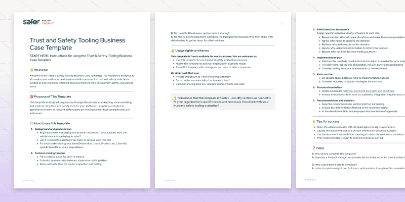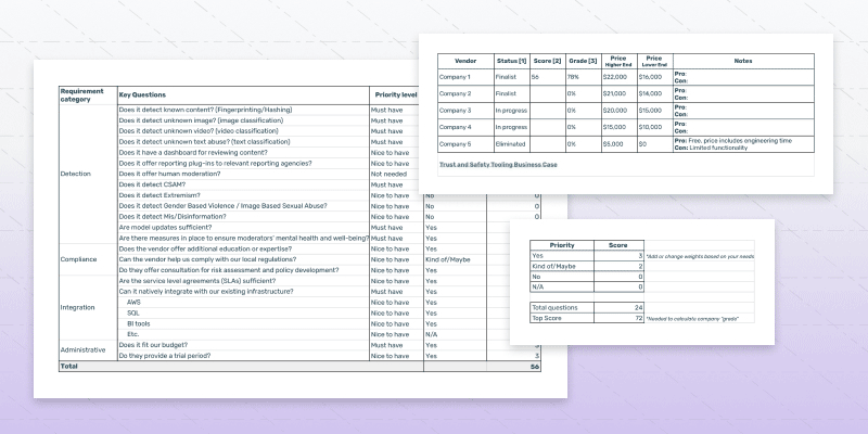 Get the trust and safety tooling scorecard template here to start your evaluation process.